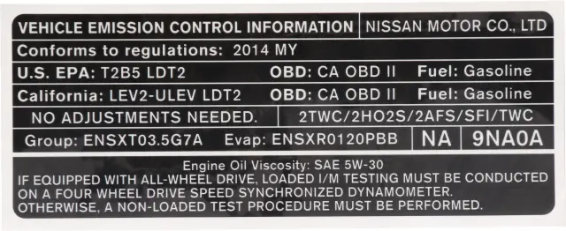 Emission Label - Infiniti (148059NA0A)